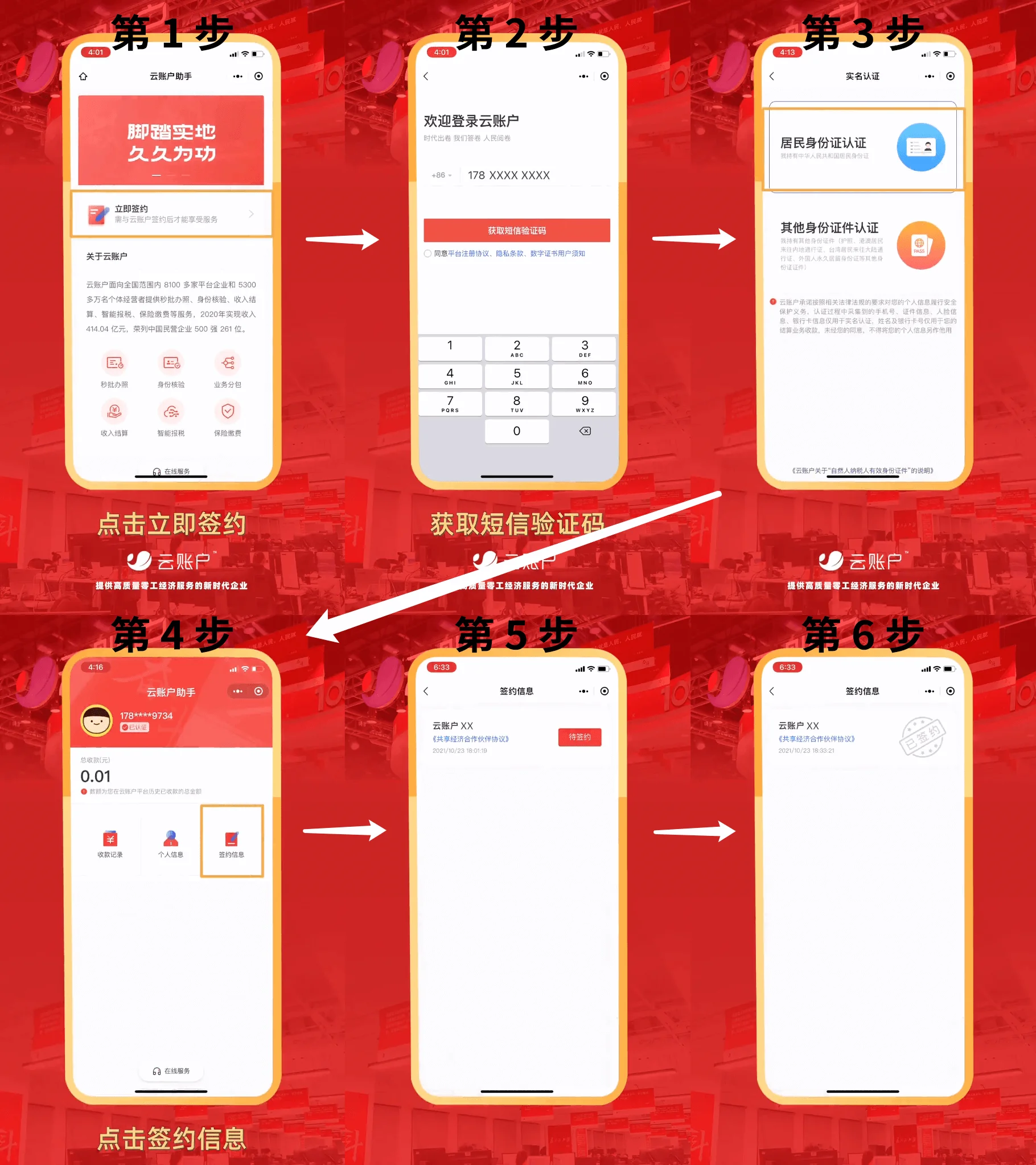 扫码后,请根据提示进行实名认证及签约。